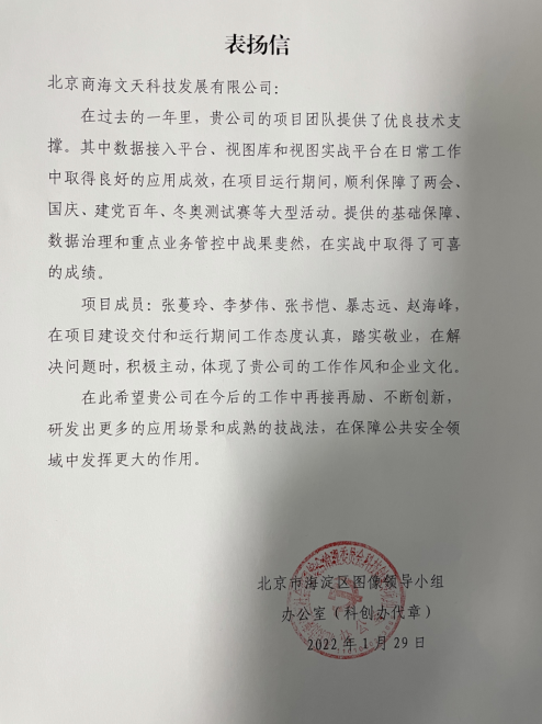 近期,北京商海文天科技發(fā)展有限公司陸續(xù)收到了來自政府客戶的的感謝信,對我司項目組...